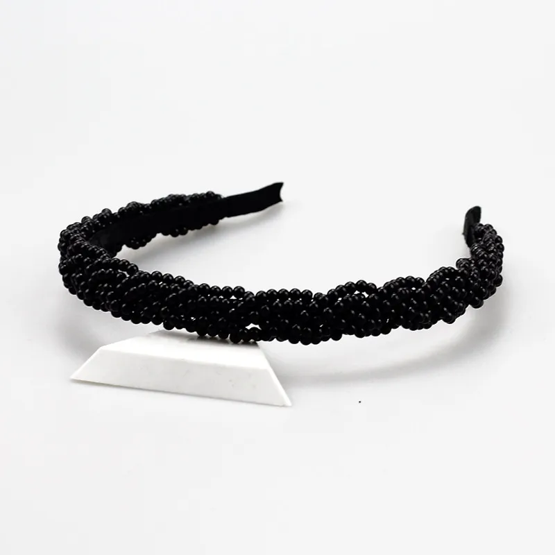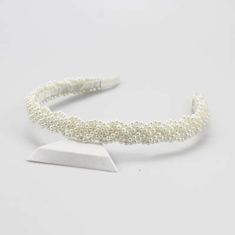 Simple Handmade Pearl Woven Headband Bride Hair Accessory Rose Solid Color Four Seasons Women’s Accessory