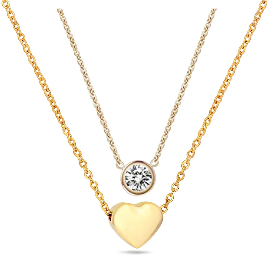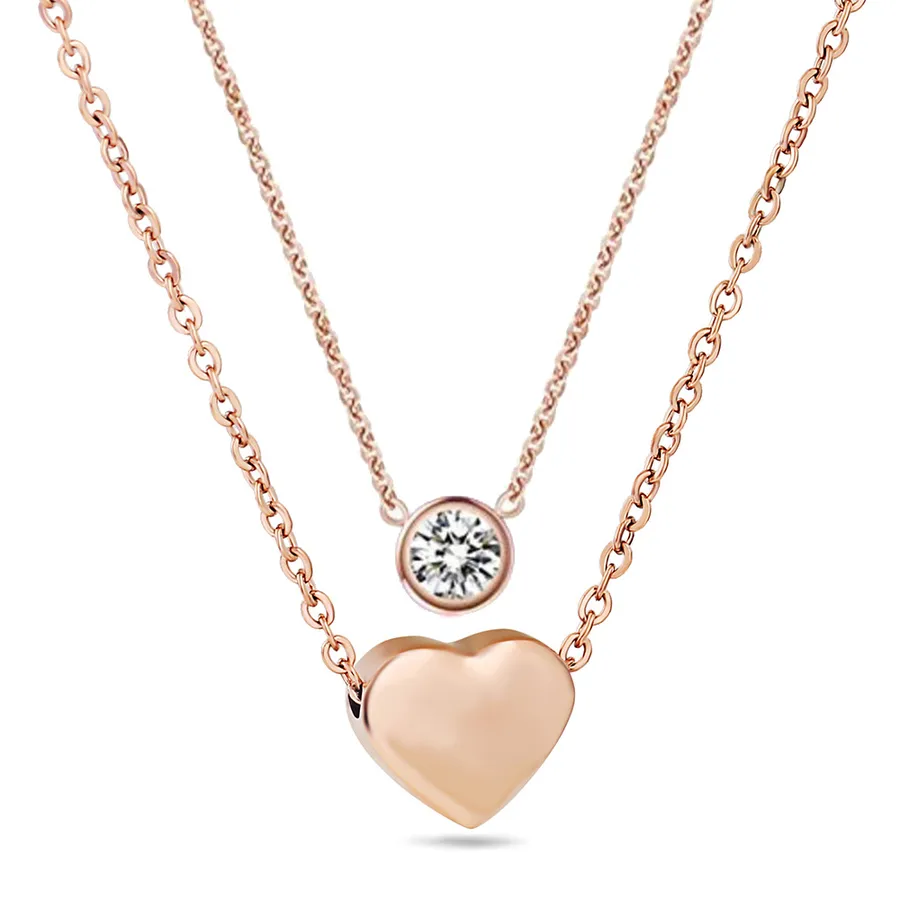 Simple Round Pendant Stainless Steel 18K Gold Plated Double Chain Collarbone Inlaid Diamond Women’s Necklace Jewelry