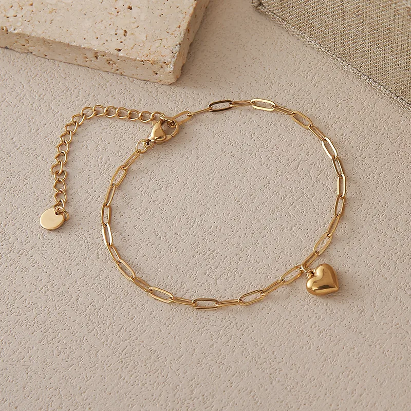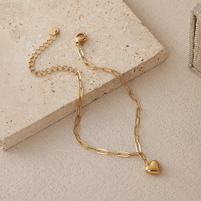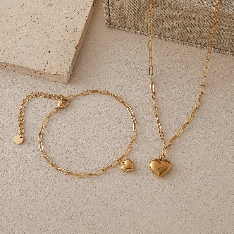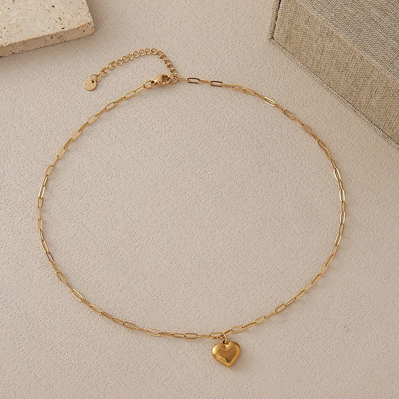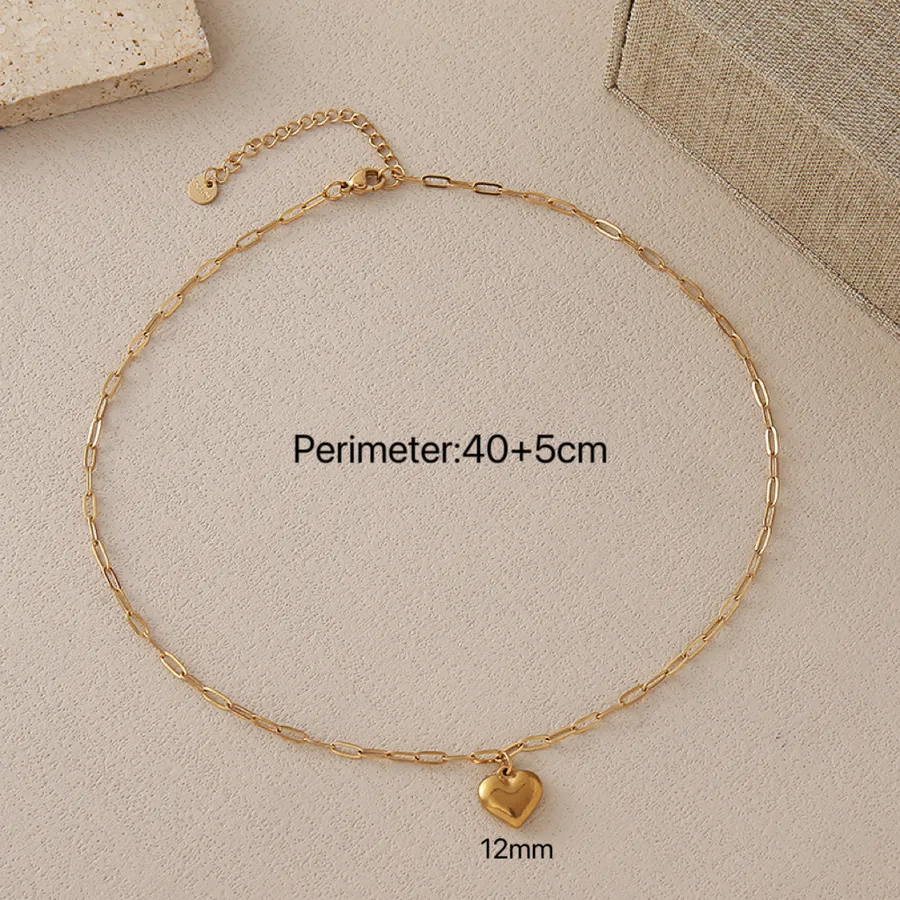 Special Heart Pendant 304 Stainless Steel Necklace for Women, 18K Gold Plated Bracelet, Hypoallergenic Handmade Paperclip Chain, Waterproof and Non-Fading