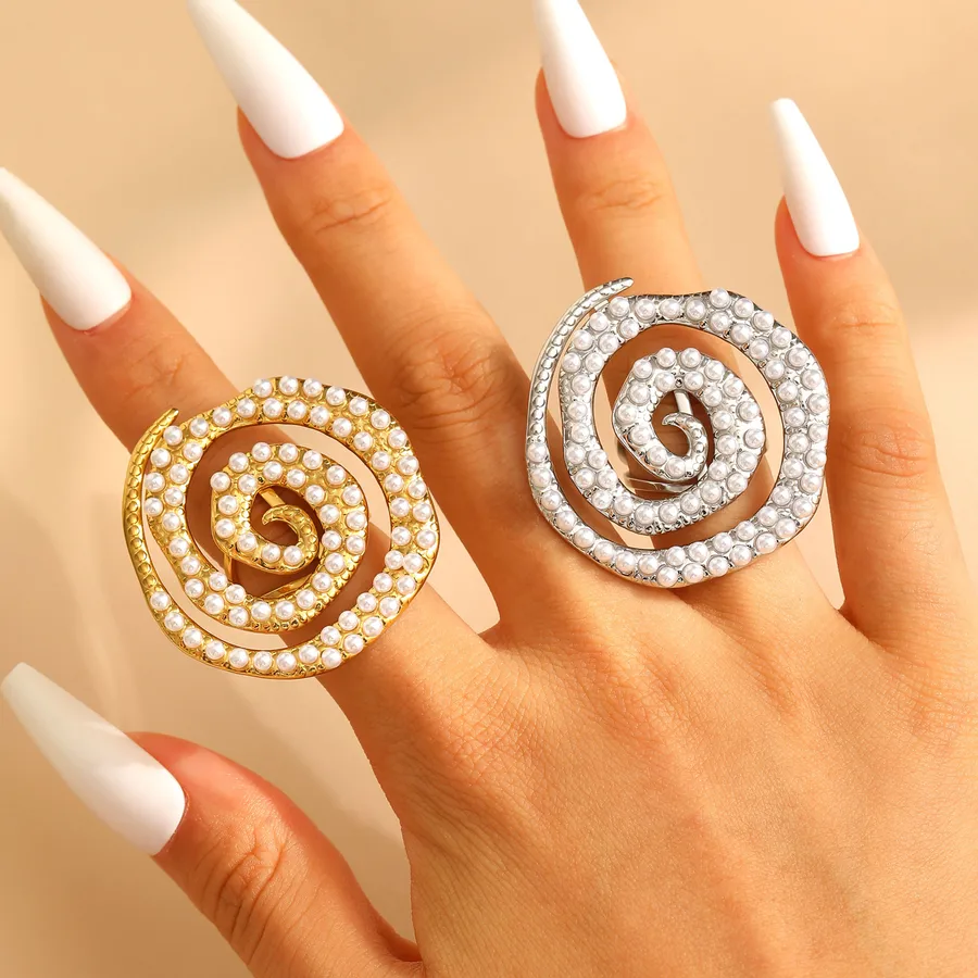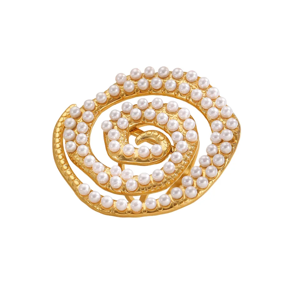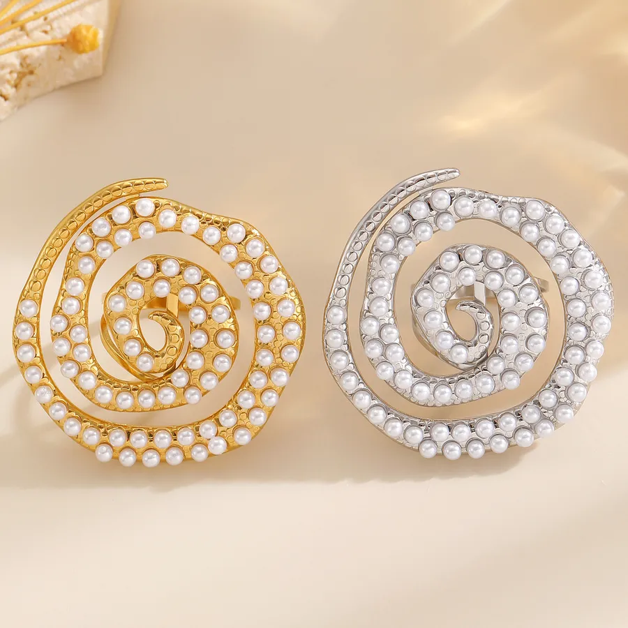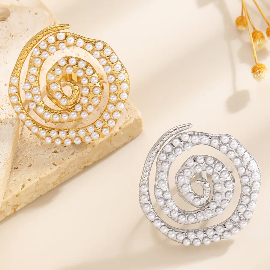 Spiral Pearl Ring Ladies Stainless Steel Vintage Shell Shape Accessories Suitable for All Seasons
