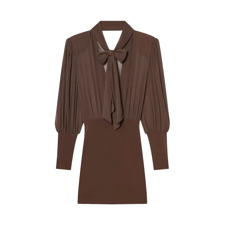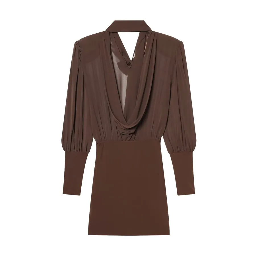 Spliced Short Dress Deep V Neck Sleeveless Knee-Length Solid Color Polyester Women’s Clothing Europe