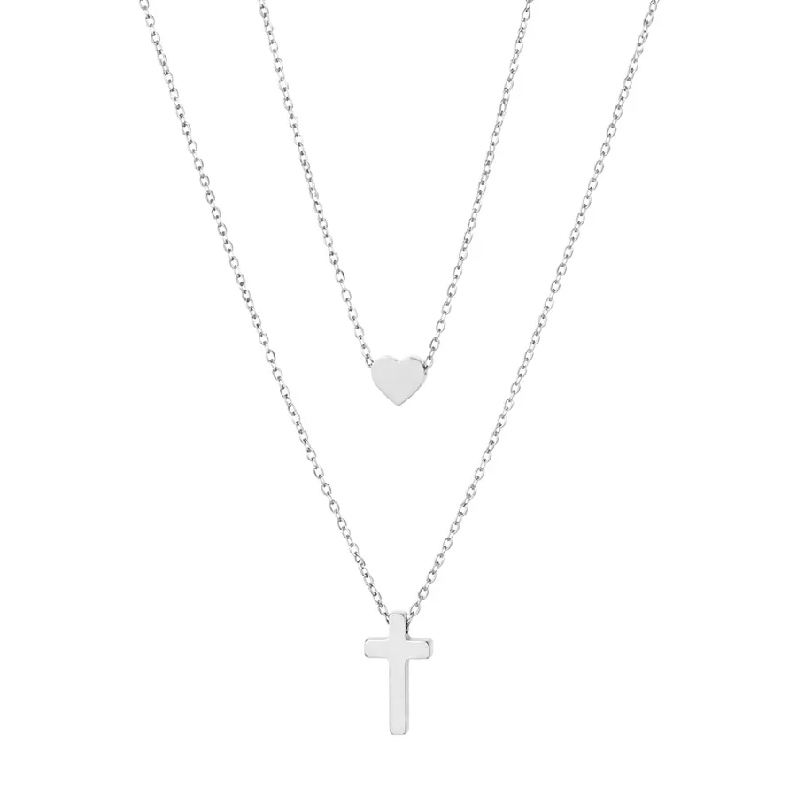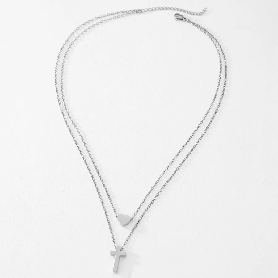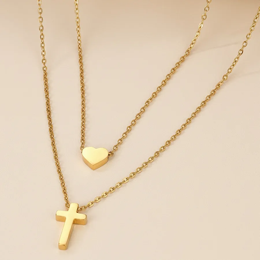 Stainless Steel Double Layer Cross Heart Pendant Necklace Women Jewelry Luxury Y-shaped Black Rose Gold Color Necklace