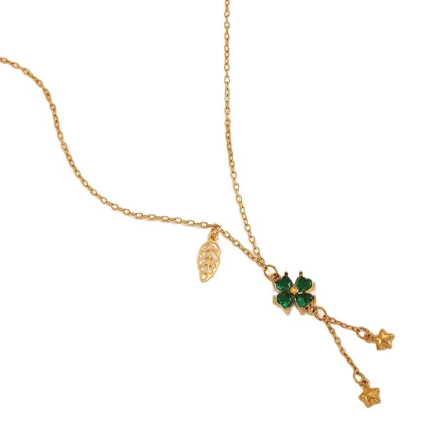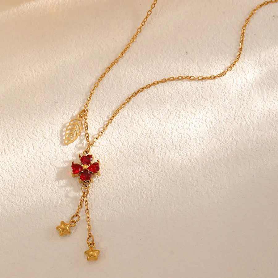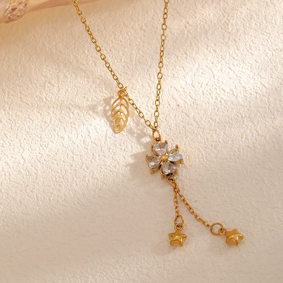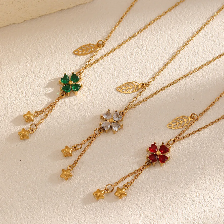 Stainless Steel Four-leaf Clover Necklace Titanium Steel Lucky Grass Zircon Pendant Autumn Winter Accessories Women’s Jewelry