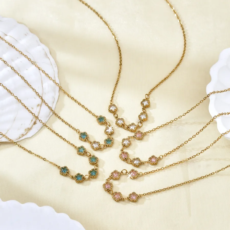 Star Inlaid Zircon 304 Stainless Steel 18k Gold Plated Vacuum Electroplating Waterproof Non-Fading Women’s Necklace All Seasons