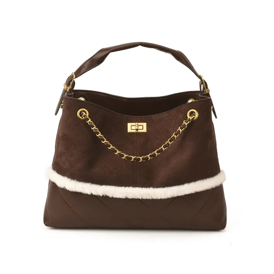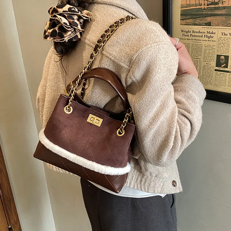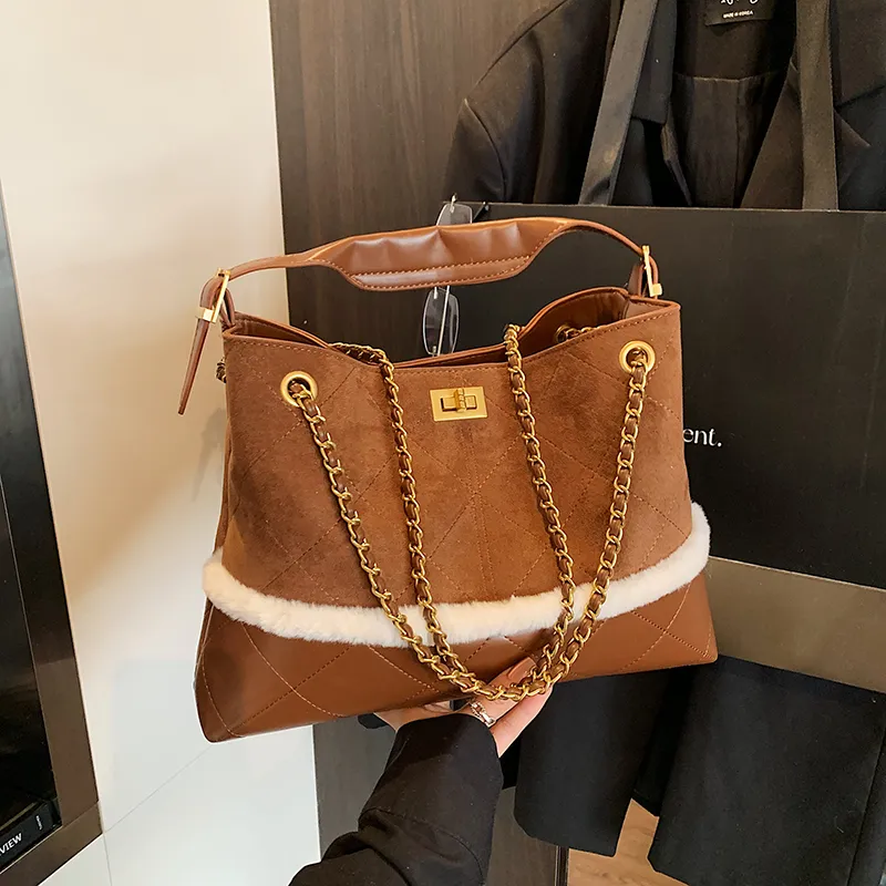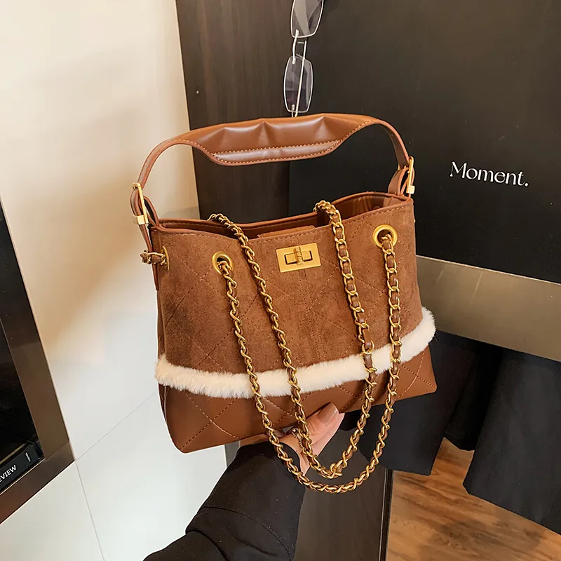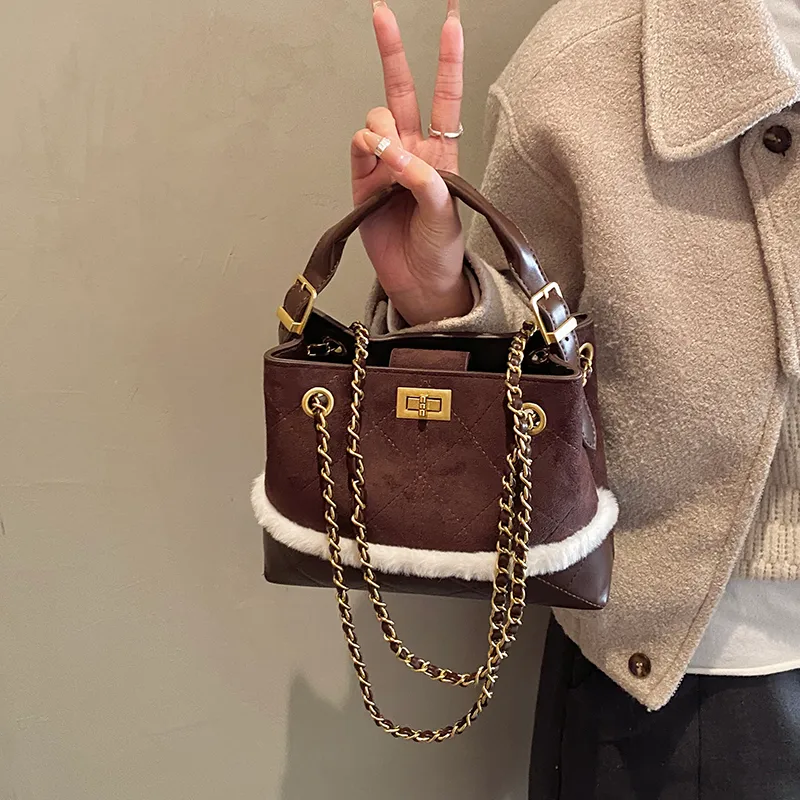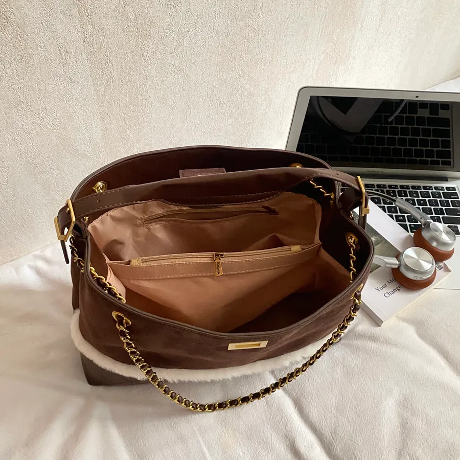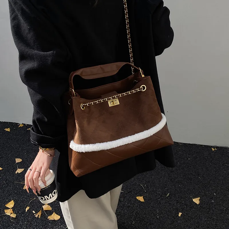 Style Chain Underarm Bag for Women, Autumn and Winter High-end Plush Tote Bag, Bucket-shaped Crossbody Bag, Shoulder Bag