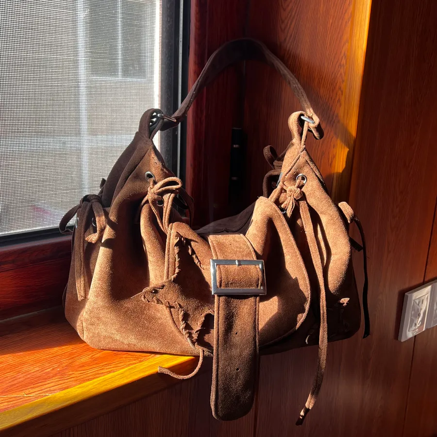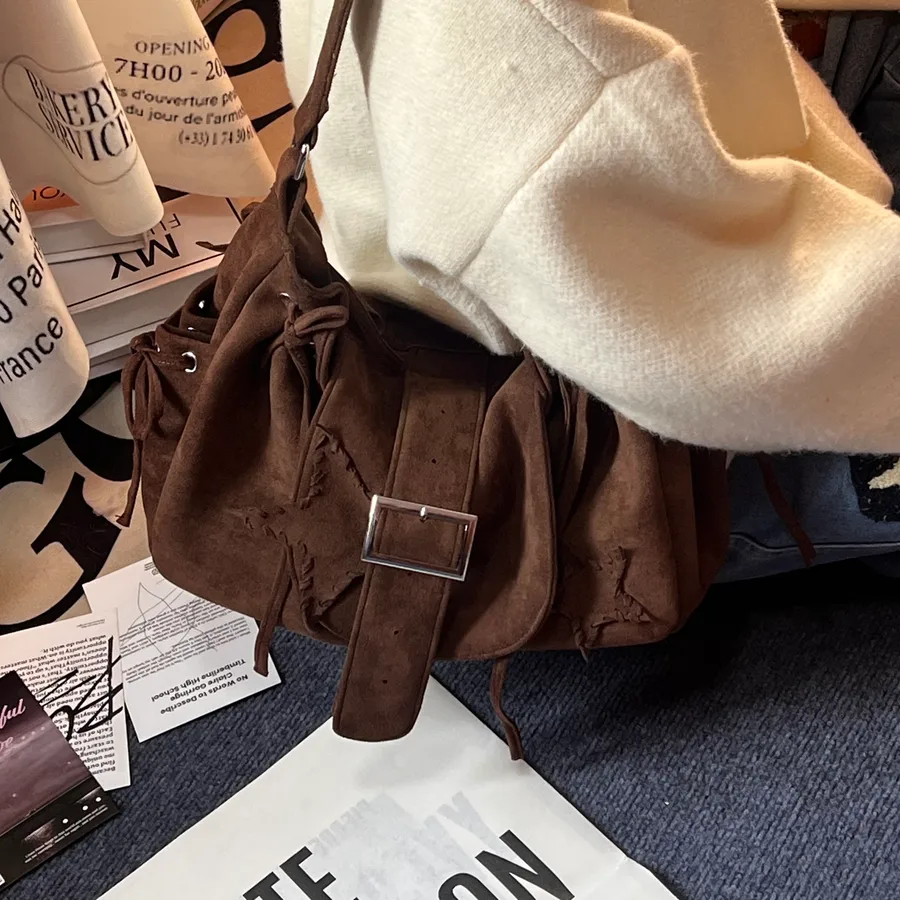 Suede Tote Bag for Women New Autumn Winter Suede Lazy Style Design Star Shoulder Bag
