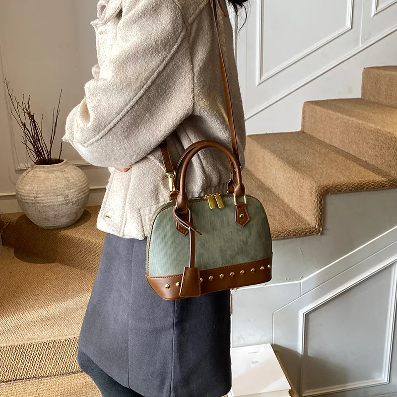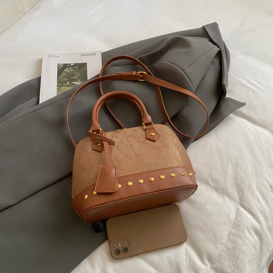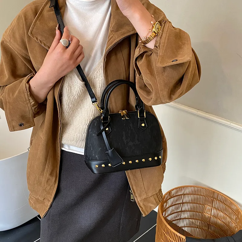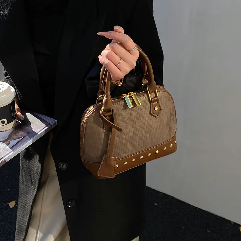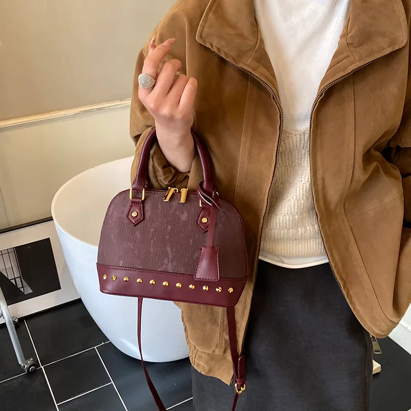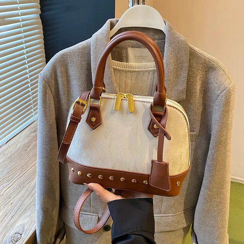 Trendy Cool Rivet Small Bag for Women New Color-Block Handbag Shell Autumn Winter Retro Anti-Theft Single Shoulder Crossbody Bag
