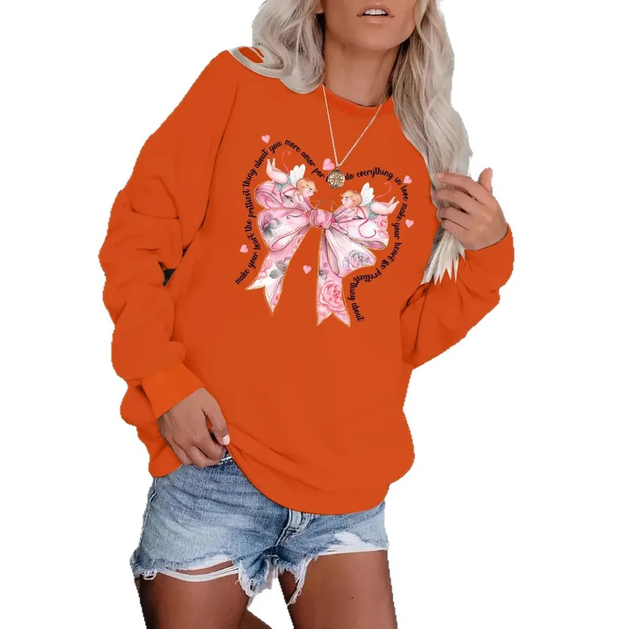 Unisex Round Neck Long Sleeve Sweatshirt Valentine’s Day Print Trendy Top Designed Polyester Regular Fit Long Shirt