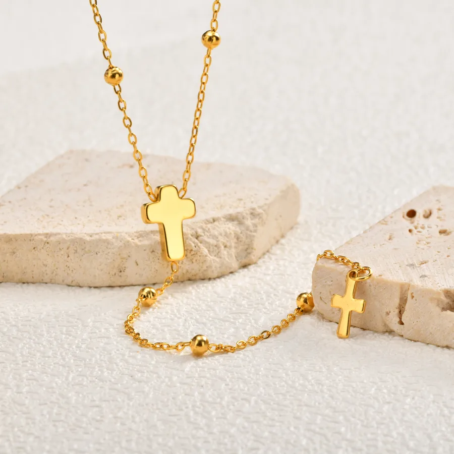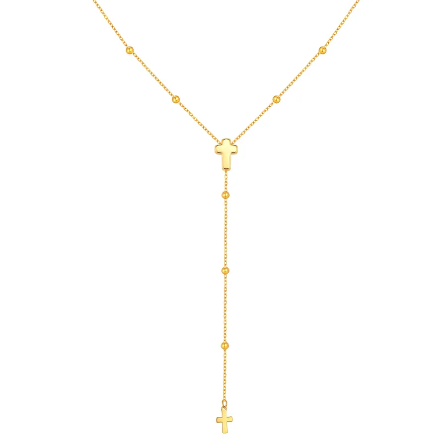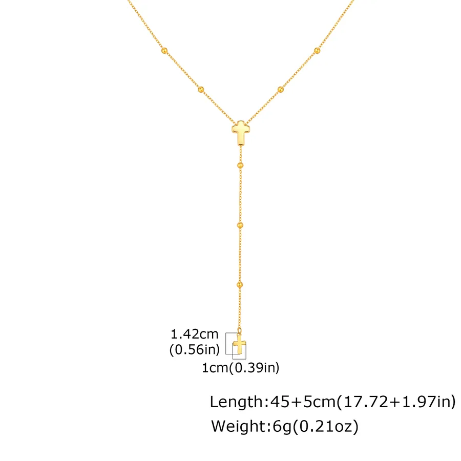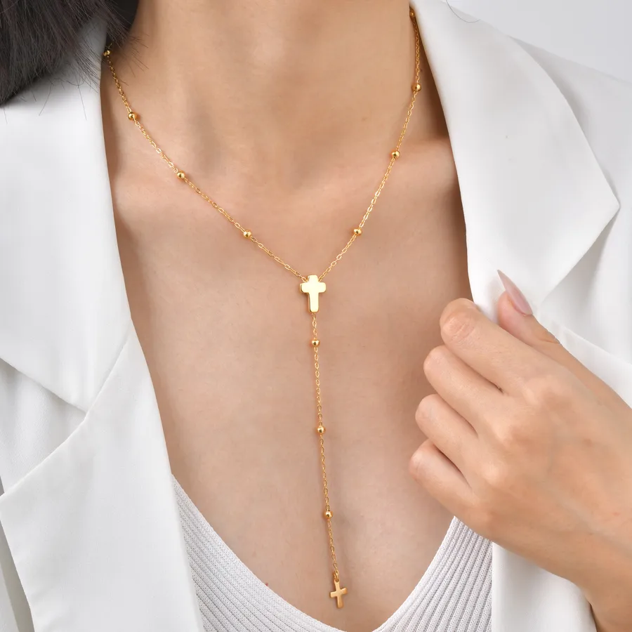Vacuum Electroplating (In Furnace) 18K Gold 304 Stainless Steel Spacer Bead Chain Cross Vintage Y-shaped Necklace for Women