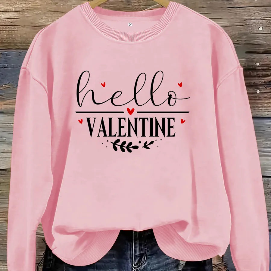 Valentine’s Day Printed Round Neck Long Sleeve Women’s Sweatshirt Casual Polyester Spandex Street Spring Summer