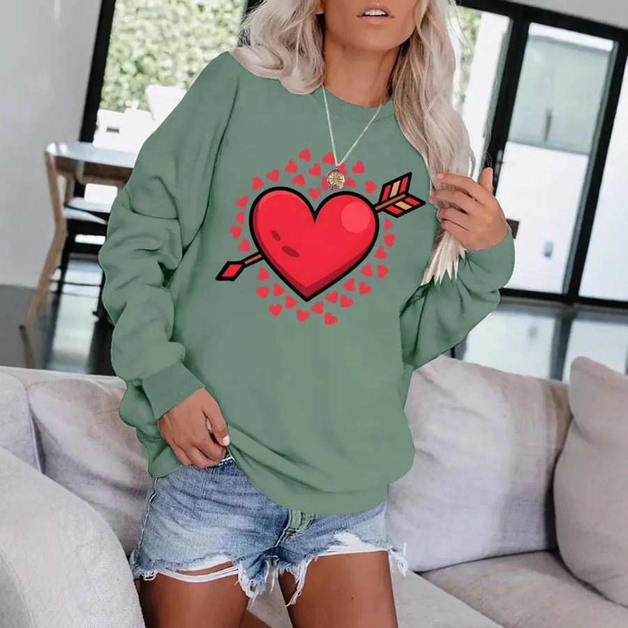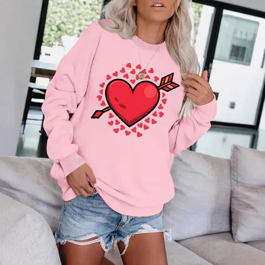 Valentine’s Day Printed Sweatshirt Round Neck Casual Long Sleeve Street Spring Summer Polyester