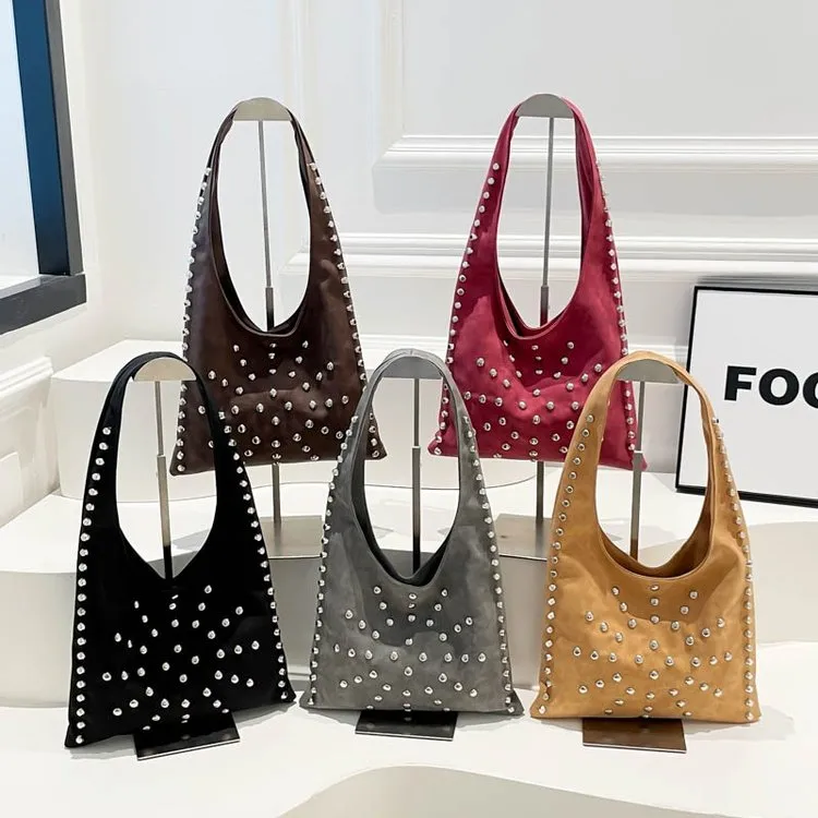 Vintage Matte PU Leather Rivet Decorated Color-Block Square Women’s Shoulder Bag
