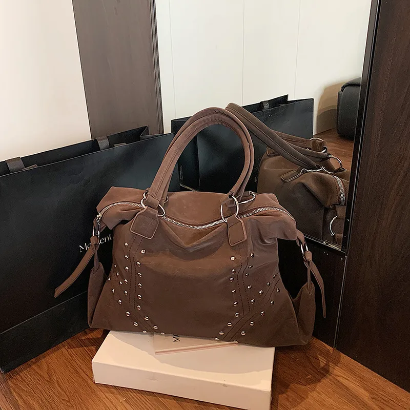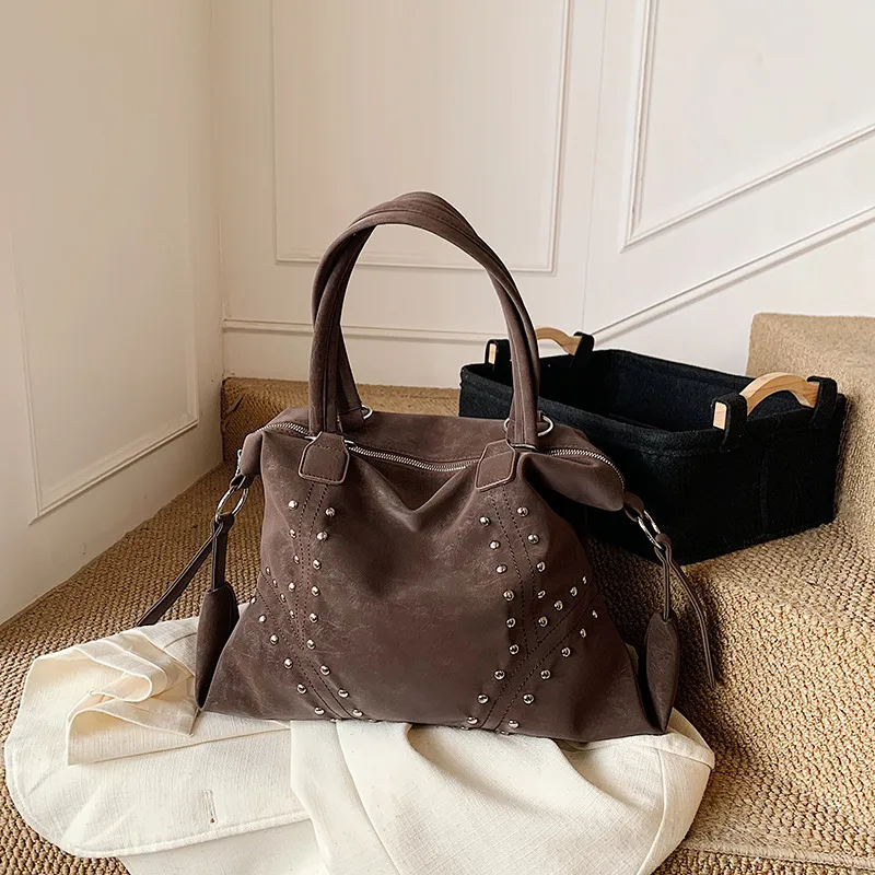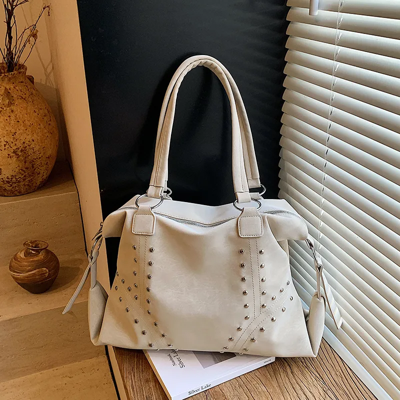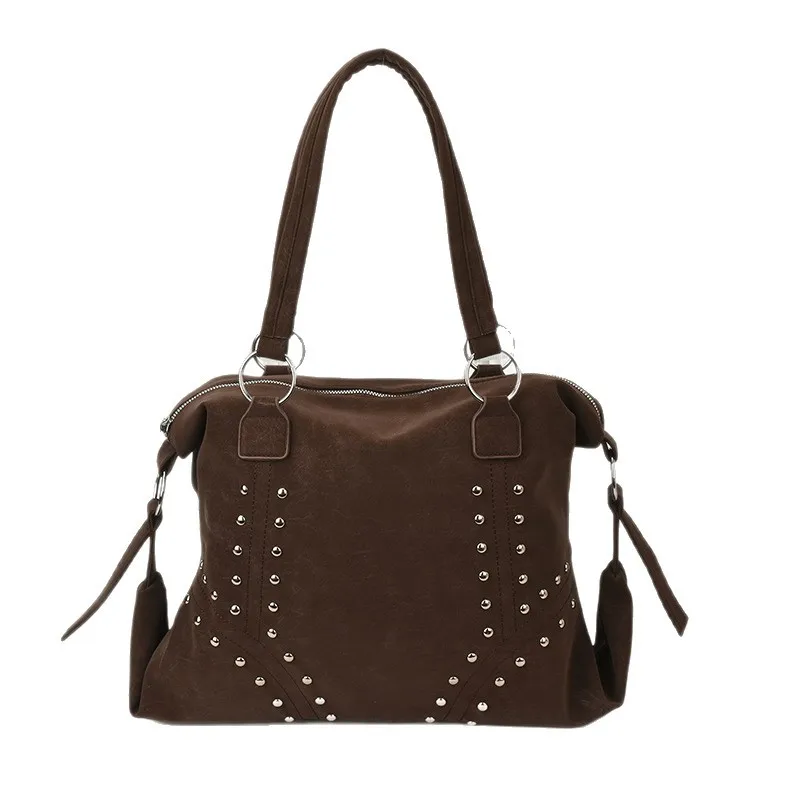 Vintage Rivet Handbag Simple Large Capacity Design Casual Shoulder Bag Suitable for Women