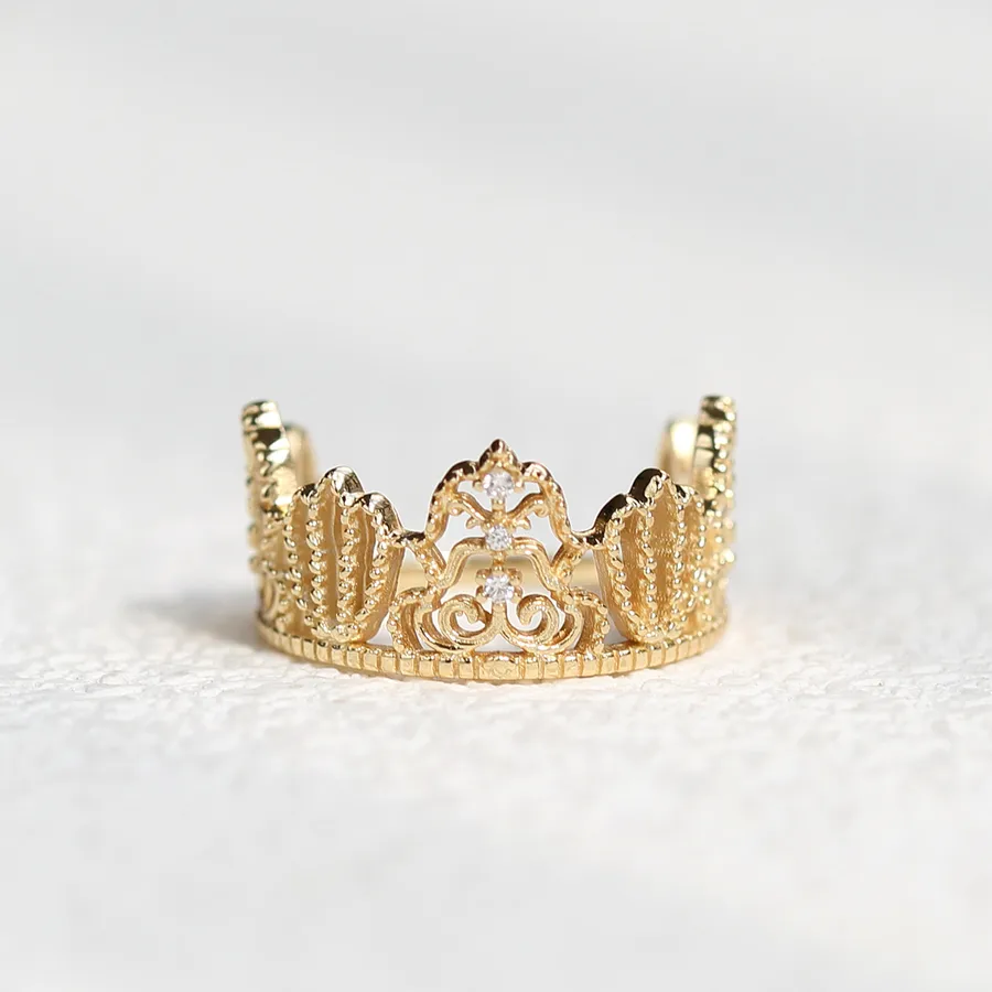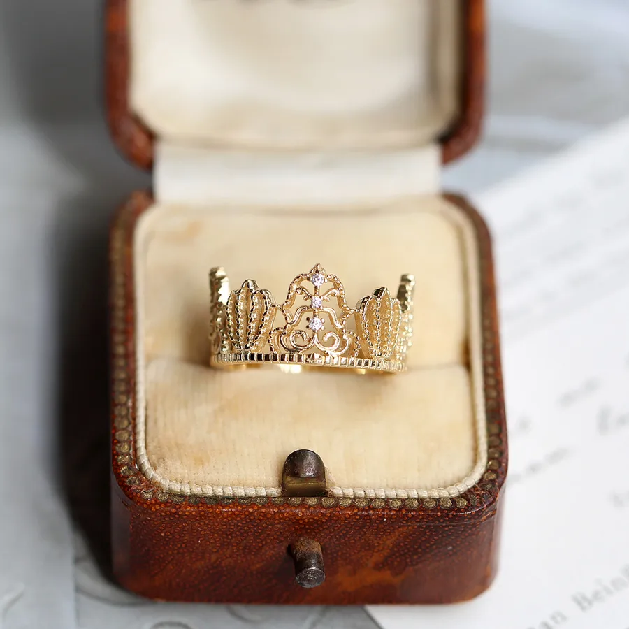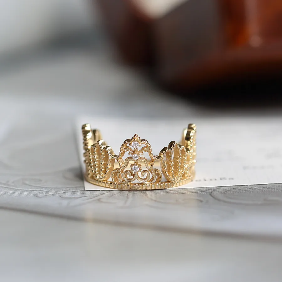 Vintage Simple Palace Lace Hollow Crown Zircon Ring New Luxury 925 Silver Ring Geometric Daily Casual Silver Colors