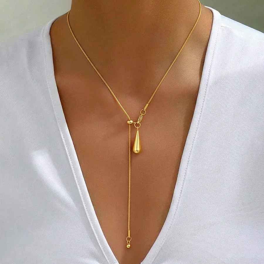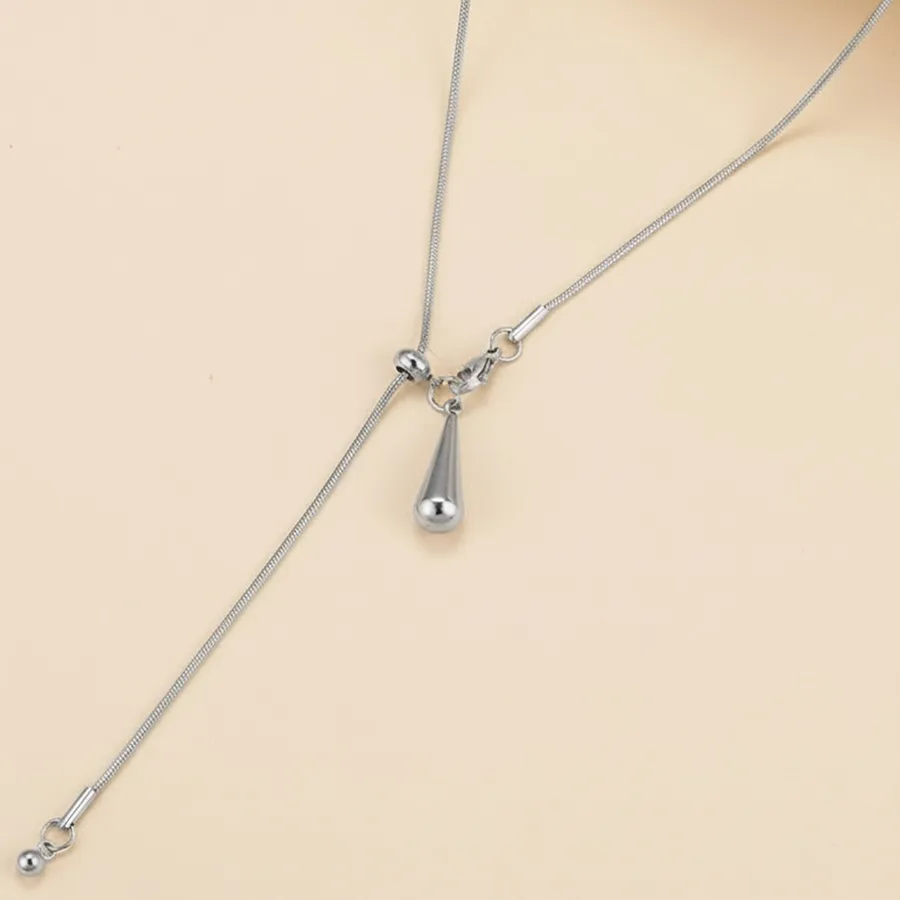 Water Drop Pendant Tassel Necklace Stainless Steel Material Suitable for Men and Women Available in Black and White
