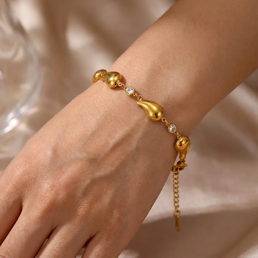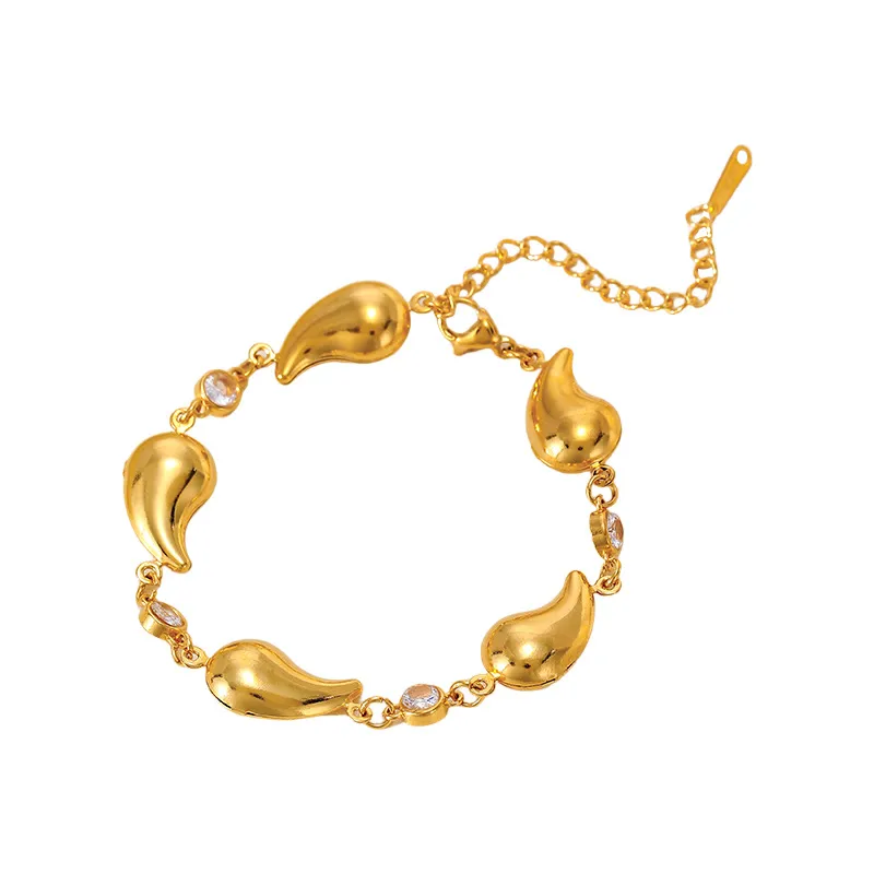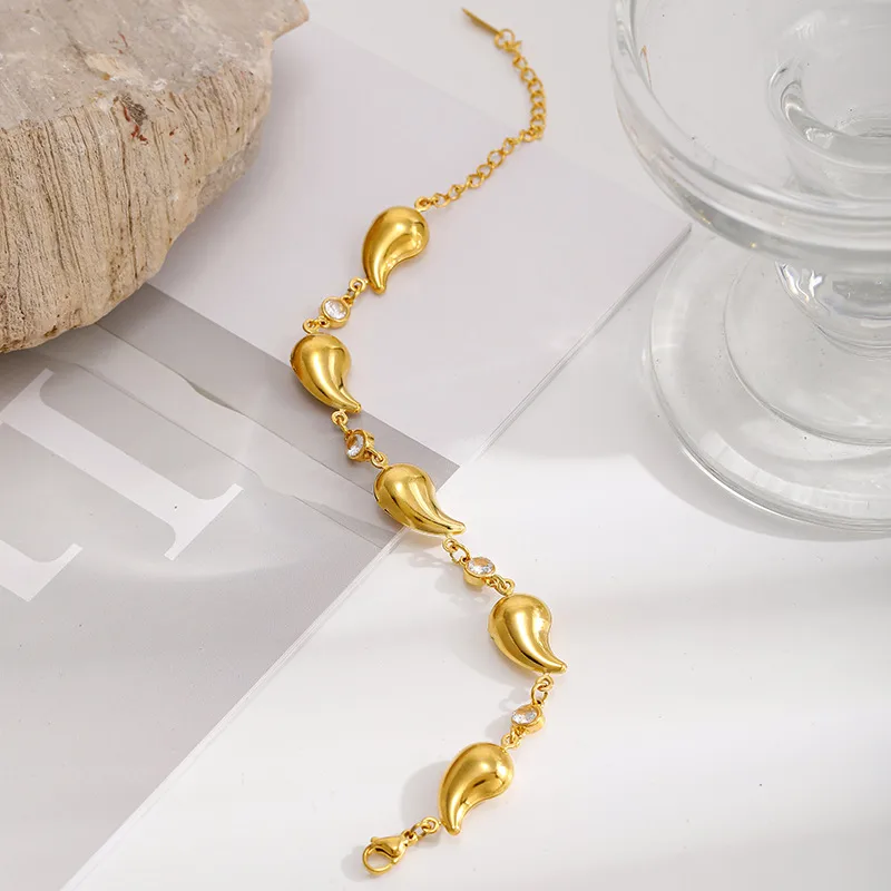 Water Drop Shape Stainless Steel Bracelet Ladies Heart Diamond Inlaid Jewelry Accessories Suitable for Dating and Daily Wear