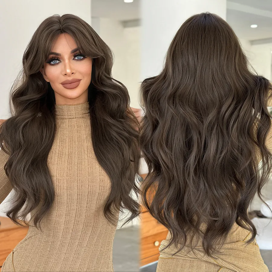 Women’s Full Head Cover Long Curl Wig Fiber Optic Wave Frontal Hair Extension Round Face Daily Use Simple Style Wig