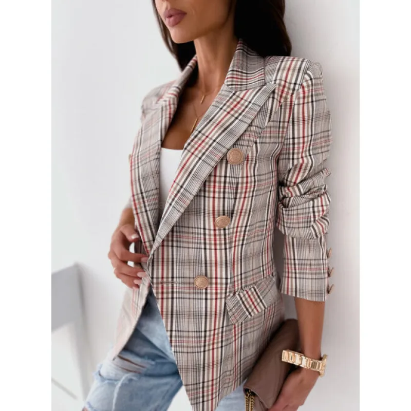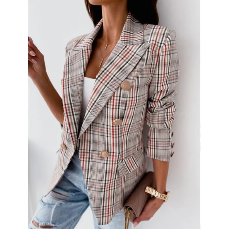 Women’s Long Sleeve Blazers Button Casual Elegant Plaid