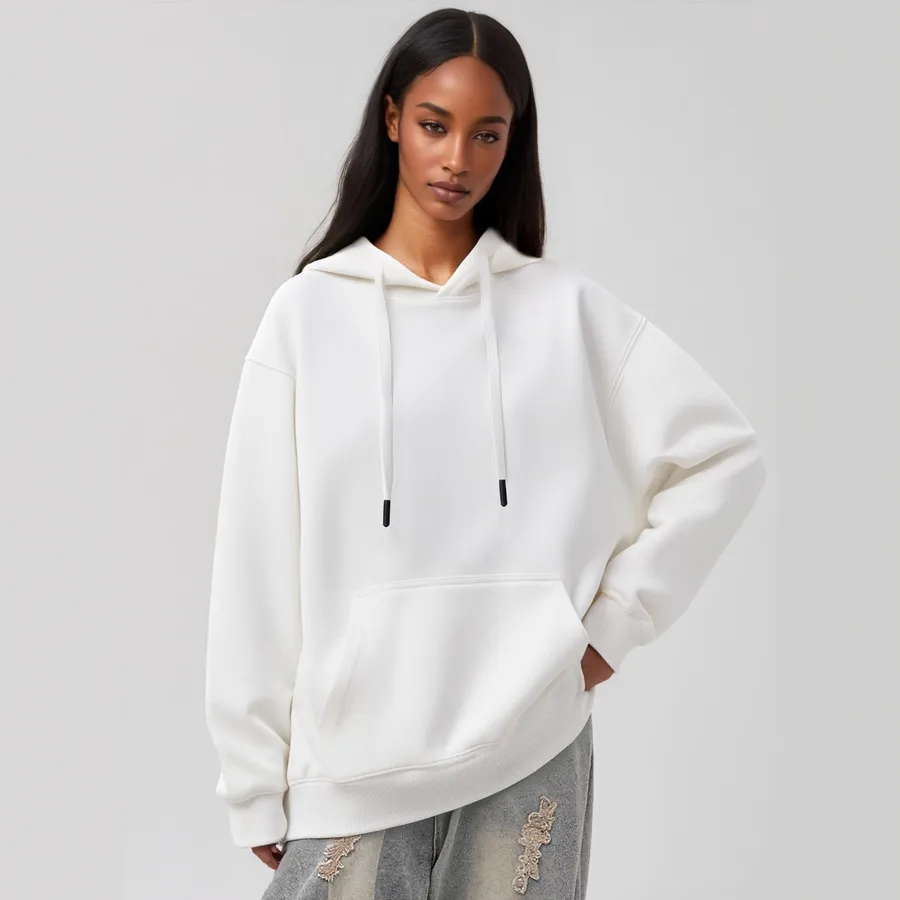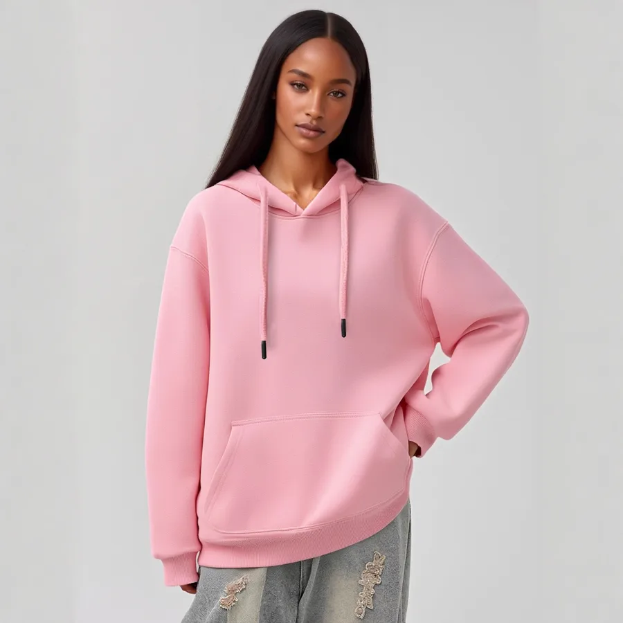 Women’s Oversized Hoodie Wool Lined Cotton Sweatshirt Casual Comfortable Loose Fit Autumn Winter Solid Color Knitwear