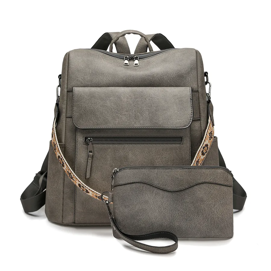 Women’s Vintage Large Capacity Backpack Color Block PU Material Simple School Bag Double Shoulder Bag